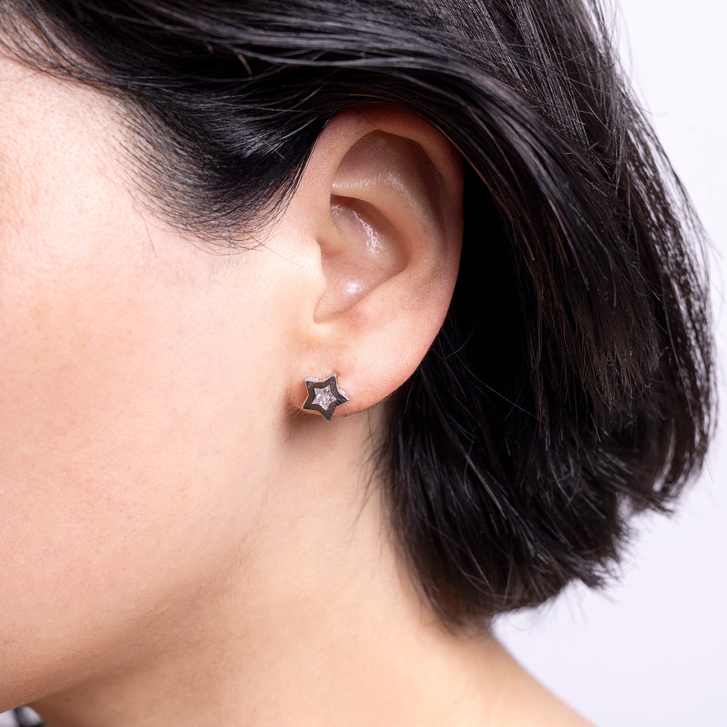Aros de plata, con detalle de circón blanco y borde de plata que rodeada y da la forma a esta estrella.