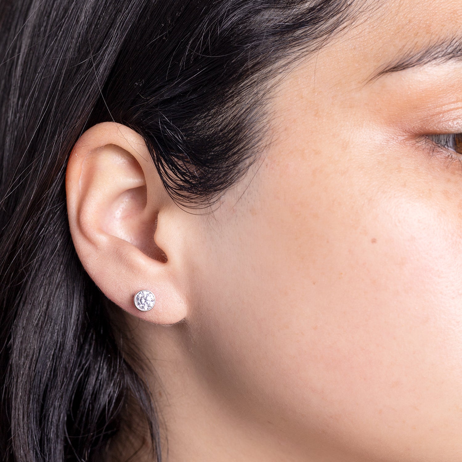Aros de plata con circón central.