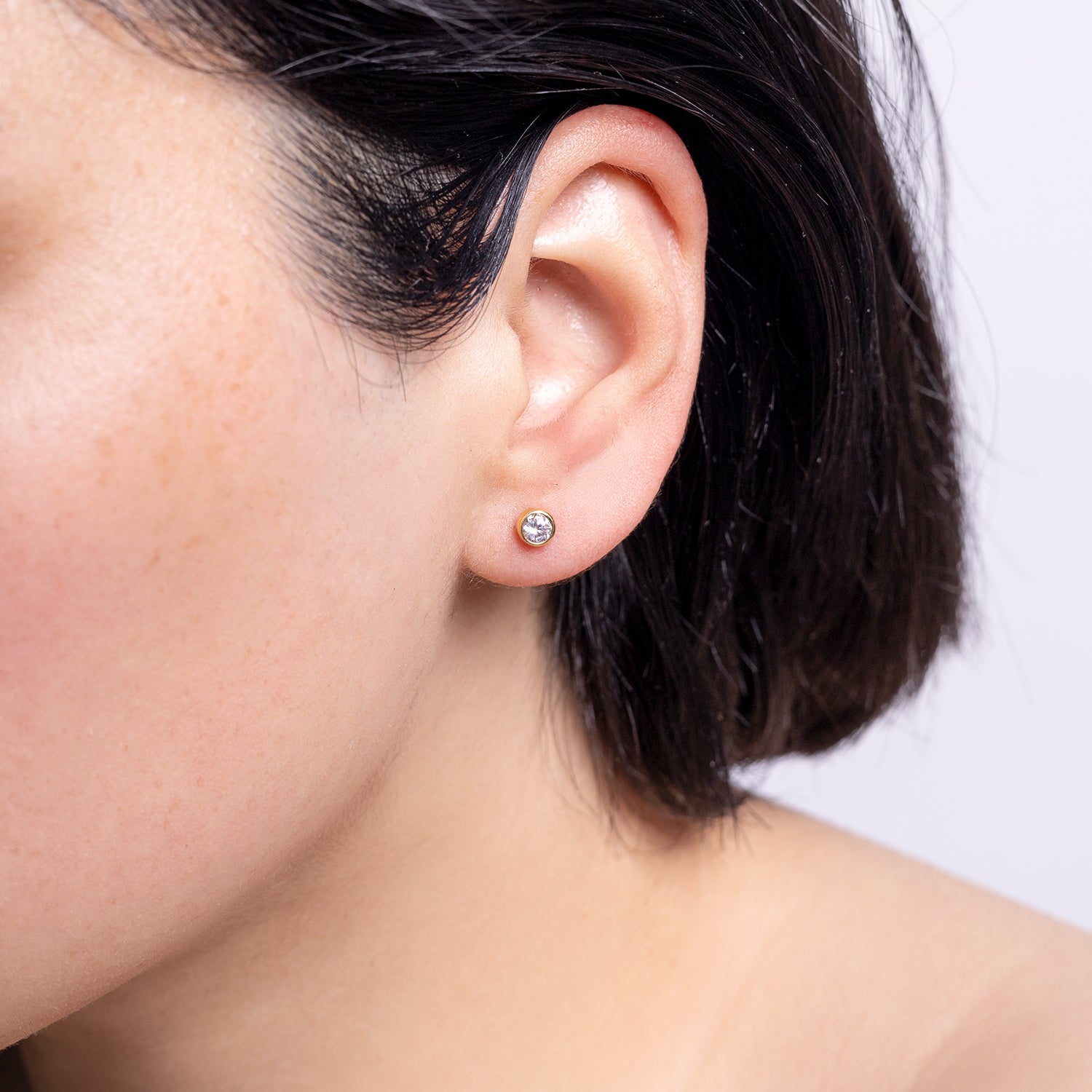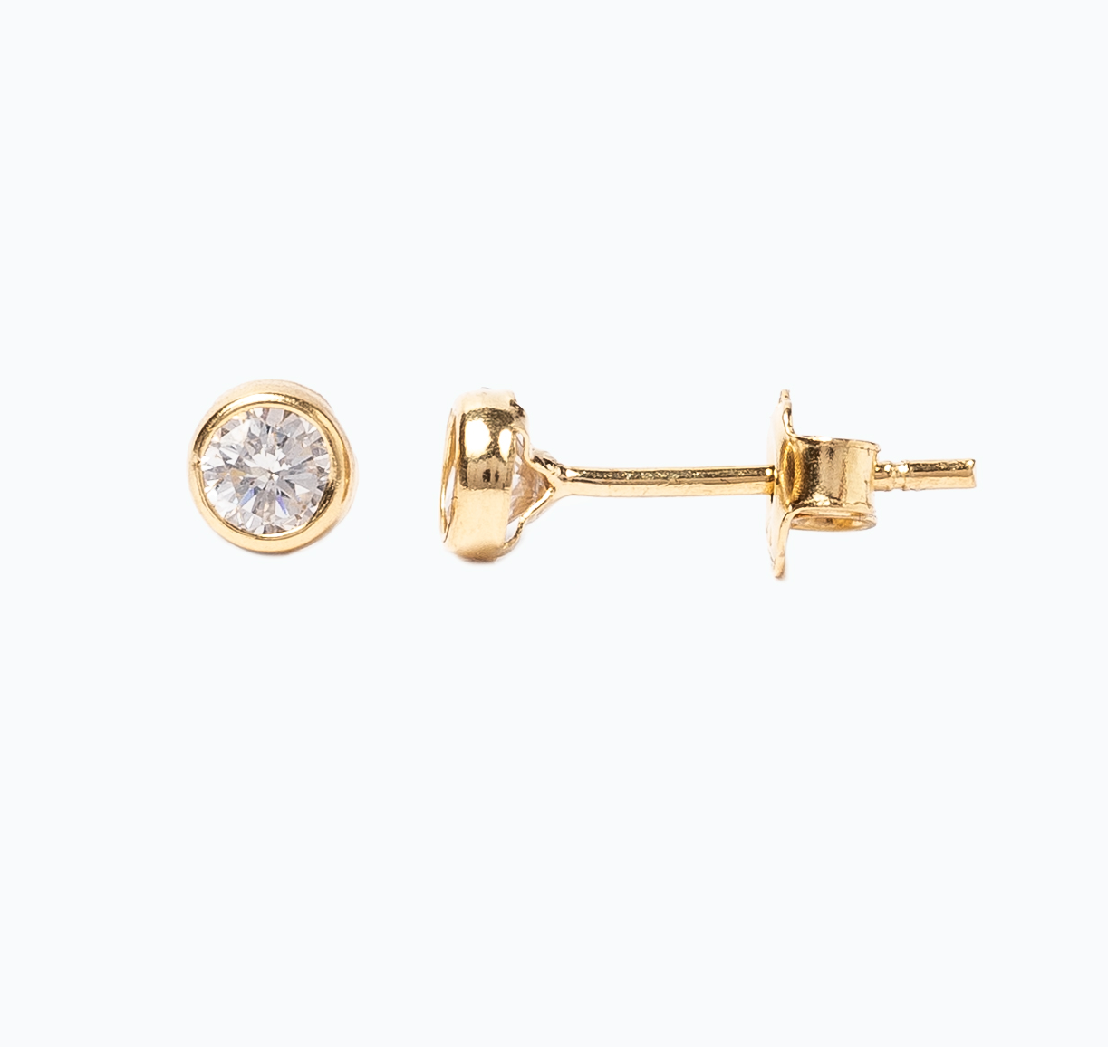 Aros de oro amarillo de 18 kts con circón blanco. Estos aros son ideales, puesto que combinan con cualquier tipo de ropa y ocasión.