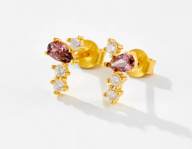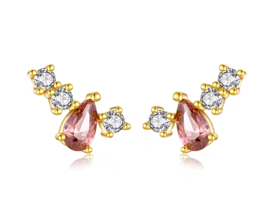 Aros estilo trepador con un diseño muy minimalista acompañado de una rodolita en forma de gota y detalles de circones blancos. Puedes utilizar este aro como forma de trepador o colgante.