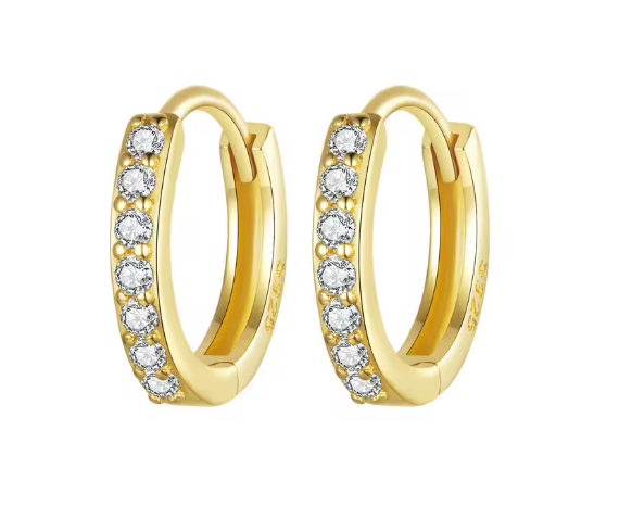 Aros argolla hechos de plata con baño de oro con detalle de circones son perfectos para uso diarios y como aro principal o aro secundario.