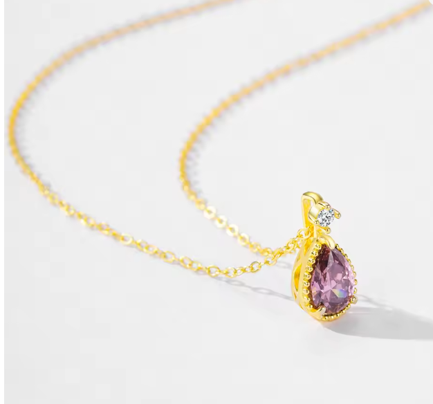 Collar hecho de plata con baño de oro, con una hermosa rodolita de corte de gota, su bello color irradia energía y serenidad. Su cadena es ajustable, por lo cual puedes regular su largo según la ropa que uses o si gustas combinarlo junto a otro collar adicional.