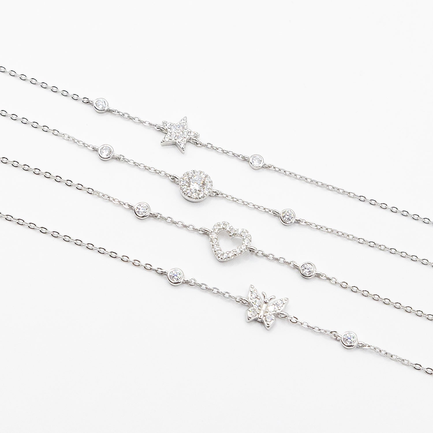 Esta hermosa y delicada pulsera esta hecha completamente de plata.con un diseño de corazón engastado con circones blancos Es perfecta para toda ocasión y muy fácil para combinar junto a otras pulseras.