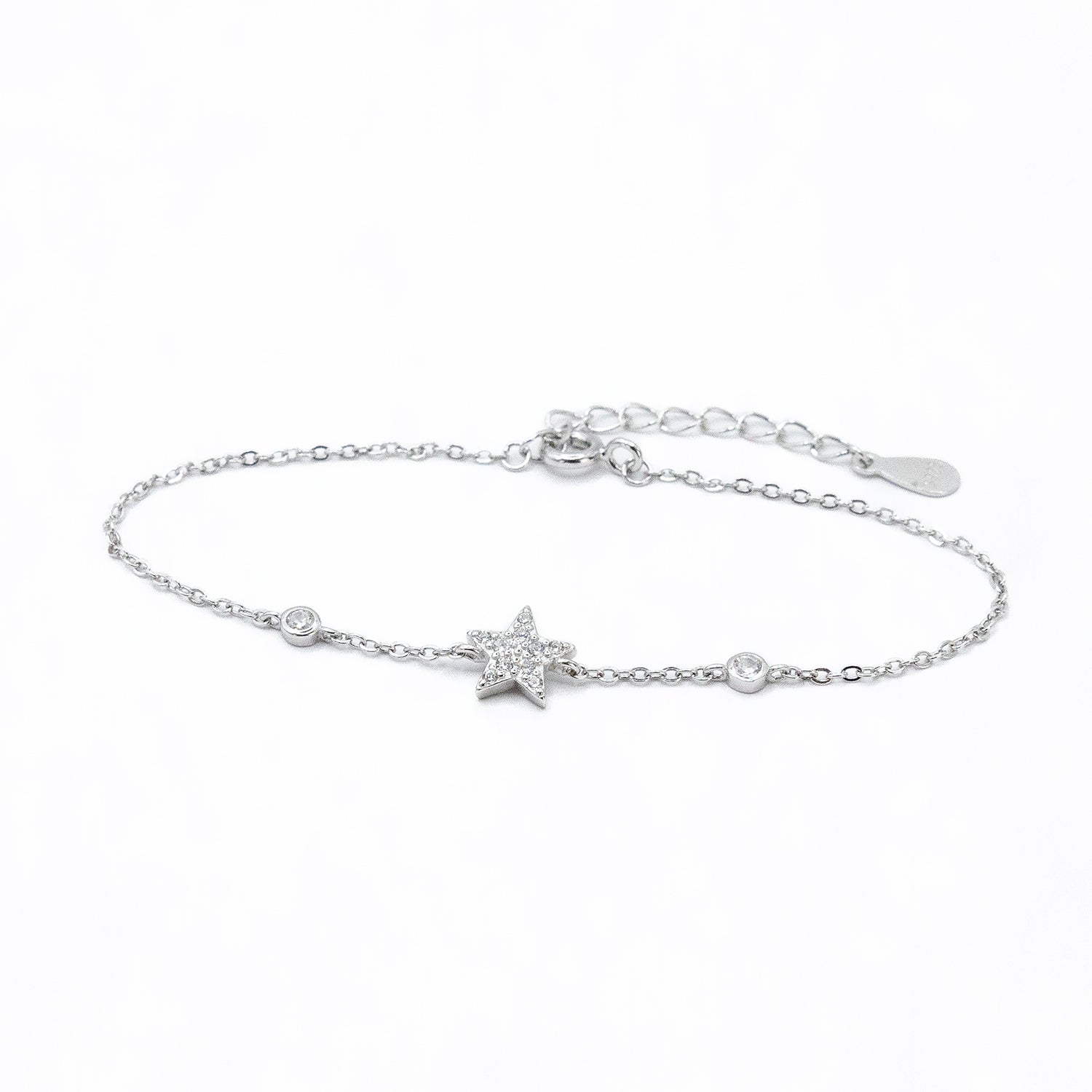 Esta hermosa y delicada pulsera esta hecha completamente de plata.con un diseño de estrella engastado con circones blancos Es perfecta para toda ocasión y muy fácil para combinar junto a otras pulseras.