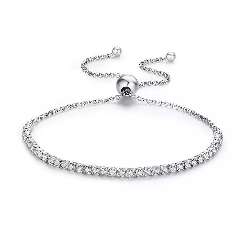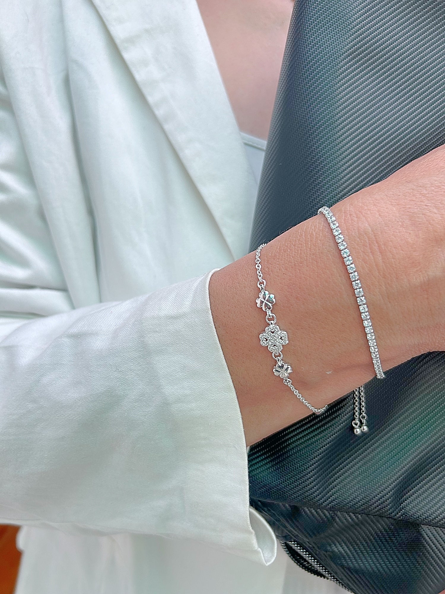 Pulsera hecha de plata con sistema ajustable , tu regulas el largo!. Además de detalles de circones blancos.